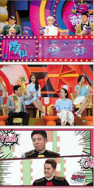 由上至下分别为《奇葩说》《言值大作战》《暴走法条君》,可以看出不管是棚景布置或是后期制作,都不用花很多钱。