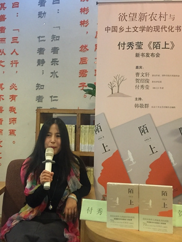 中新网北京10月31日电(上官云)近日,70后作家付秀莹推出了最新作品《陌上》。30日,该书发布会在北京举行。会上,付秀莹与国际安徒生奖获得者曹文轩、著名评论家贺绍俊共同解读对于当下新农村生活、以及写作问题的思考。