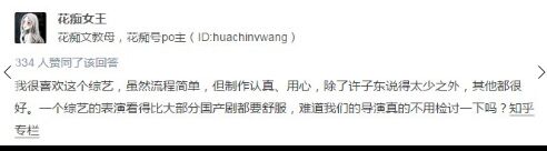 当@荔枝八卦看到归亚蕾入场,全体观众起立鼓掌,演员读完,观众又起立,给予长达数分钟的掌声时,说,很感谢这个节目的观众,让节目充满了形式感。 “这样的尊重,是对念信人的尊重,也是对写信人的在那种,如此互相尊重,在一档综艺节目中太难看到了“。