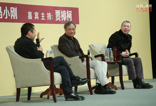11月7日晚,电影《比利·林恩的中场战事》在清华大学举办了中国首映第二场活动——“我们的第一次”李安冯小刚对谈,贾樟柯导演特别担任本次活动的嘉宾主持。在近两个小时的对谈中,李安导演与冯小刚导演畅聊与电影有关的话题,从自己的新作到对电影的探索,从技术的突破到对演员的指导,无所不包,让现场观众享受了一场关于电影的“视听”盛宴。整个对谈过程中,三位导演互动不断,气氛轻松愉快。李安导演更用“形式和内容一样重要”“除了电影,我只想烧烧菜,被太太数落”“还是拍电影比较安全”“美国电影有点僵硬了”等一句句经典语录赢得现场同学的阵阵掌声。