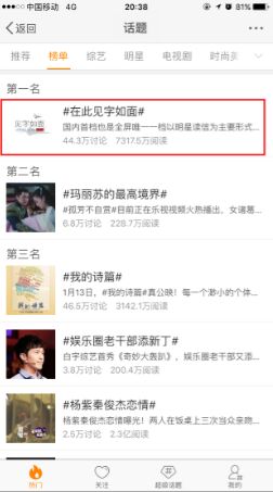 上周,第三期播出当晚,#在此见字如面#再次登顶微博话题榜首, 24小时之内收获来自诸如@光明日报、@人民日报观点频道、@界面、@中国新闻周刊、@电影扒客、@豆瓣、@新浪看点娱乐、@凤凰娱乐、@梨视频等诸多微博大V的自动转发、好评及推荐。